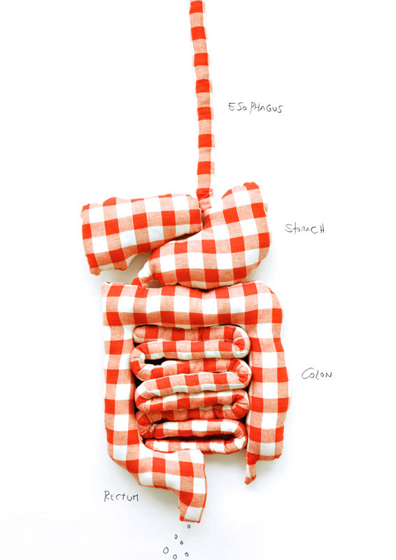 In The kitchen la tovaglia a scacchi bianchi e rossi diventa sfondo e palcoscenico della nostra esistenza e delle nostre inquietudini. Il quadrettato è codice di qualità e tradizione, regala sicurezza, abbondanza e conferisce un’identità comune. Tutte le foto di questa serie sono stampate su tessuto creando una serie di rimandi fra materiali. La tovaglia diventa anche apparato digerente e poi respiratorio, attraverso l’atto del cucire mi riapproprio di questi organi componendo una sorta di tavola anatomica dove l’anatomia (dal greco "divisione tagliando") perde la sua freddezza per narrare qualche cosa di noi. In questo caso vediamo il corpo diventare tavola imbandita, ma anche luogo dove si concretizzano le convenzioni sociali. L’atto del cucinare è un rituale dove incessantemente si costruisce e si distrugge, dove si mettono in atto amore e discordia, mi piace vedere la cucina come un piccolo mondo, un laboratorio chimico ed emozionale.